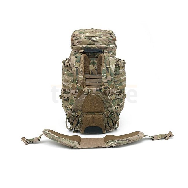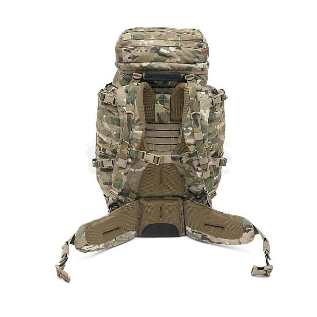The entire pack is covered in MOLLE webbing which allows the attachment of various pouches to increase carrying capacity.