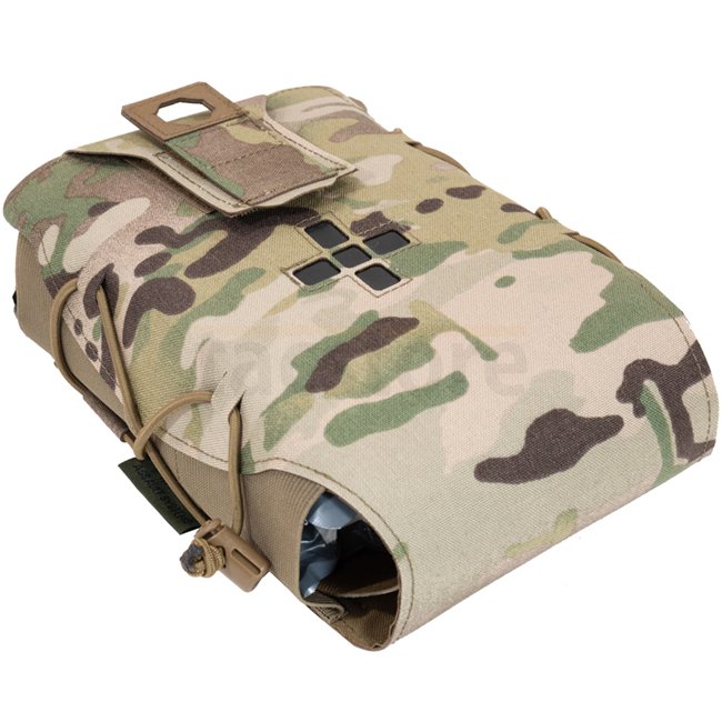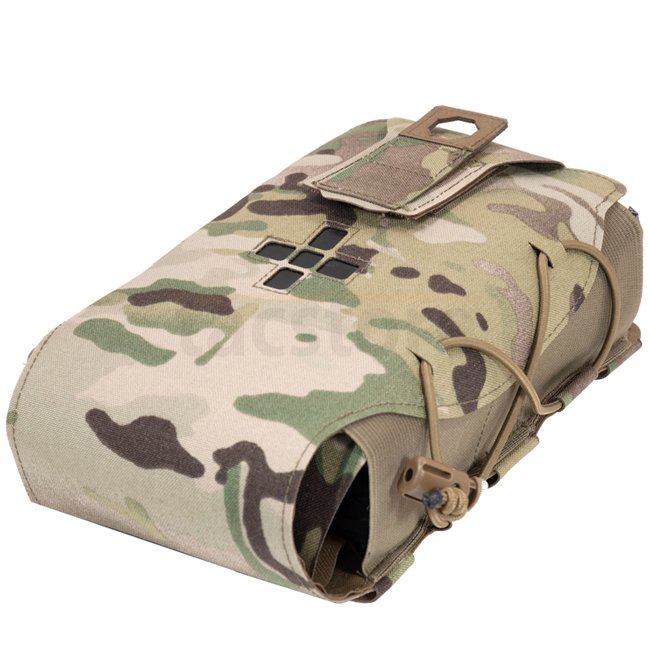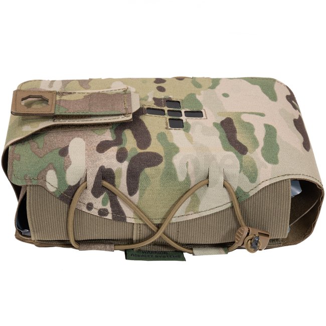 The Laser Cut Large Horizontal Individual First Aid Kit (IFAK) by Warrior Assault Systems is engineered to accommodate a comprehensive medical kit suitable for Special Forces operators. It securely holds multiple Combat Gauze, Chest Seals, CAT tourniquets, trauma bandages, and nasopharyngeal airways within a removable inner sleeve featuring elasticated pockets and loops for organized storage. The inner sleeve is easily accessible with a single hand via a Hypalon-coated pull tab, ensuring rapid deployment in critical situations.