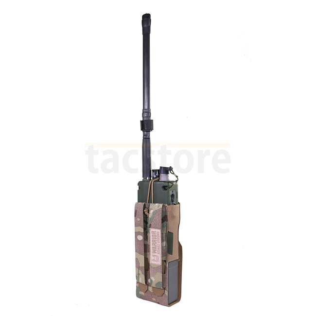 The Laser Cut MBITR/Harris Radio Pouch is designed to securely hold both the MBITR 148 and Harris PRC 152 radios. Its Velcro and bungee closure is fully adjustable for height, while the double Mil-Spec elastic provides lateral tension for a stable fit. The pouch can be attached via two MOLLE arms to Plate Carriers, Belts, Chest Rigs, and Bags. A Velcro tab allows for quick battery changes without removing the radio from the pouch.