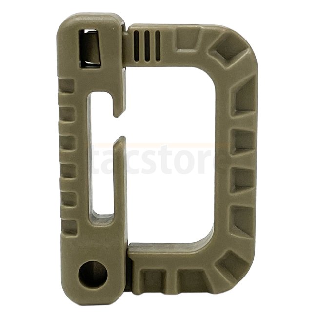 Securely attach equipment with the Woojin Plastic Carabiner in Tan. Ideal for fastening gear on the MOLLE system. Dimensions: 50 x 38 x 12 mm. Max webbing width: 25 mm. Warning: Not for climbing or rescue missions!