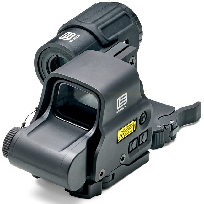 Das EOTECH HHS™ VI kombiniert das EXPS3‑2 Holografikvisier mit dem kompakten G43 3× Vergrößerer über eine seitlich schwenkbare STS-Halterung. Es ermöglicht schnelle Zielerfassung im Nahbereich und präzises Anvisieren auf Distanz. Das EXPS3‑2 ist nachtsichtfähig, der G43 bietet ein großes Sichtfeld bei kompakter Bauweise.