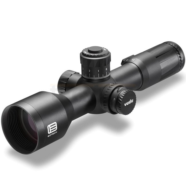 Das EoTech Vudu 5-25x50 MD4 FFP MOA - Schwarzes Zielfernrohr bietet kompakte Leistung auf lange Distanz in einem kurzen 34mm Flugzeug-Aluminiumrohr. Ausgestattet mit XC Hochdichteglas, Höhenverstellungsturm mit EZ Check Nullstopp und einem abgedeckten Sei