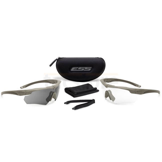 ESS Crossbow 2X Kit - Tan: Ultradünne Bügel, ideal für die Verwendung mit Gehörschutz und Kommunikationsausrüstung. Das Set enthält zwei Rahmen und zwei Gläser (rauch, klar). Hochschlagfeste 100% UVA/UVB Polycarbonatgläser.