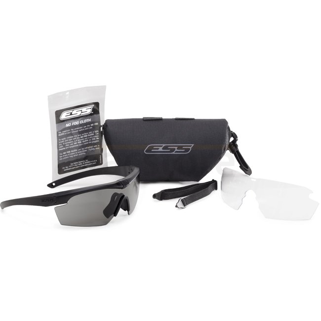 Dieser Crosshair-Augenschutz entspricht der US-amerikanischen MIL SPEC MIL-PRF-32432, ANSI Z87.1 2015, CE EN 166 und der US-Bundesbehörde OSHA. Alle ESS-Gläser bieten 100% UVA/UVB Schutz.