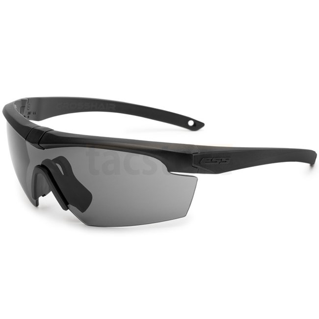 ESS Crosshair ONE Smoke - Schwarze Sonnenbrille, die den U.S. MIL-PRF-31013 & ANSI Z87.1-2010 entspricht. Ballistische Schutz mit 100% UVA/UVB-Schutz. Wiegt nur 35g.