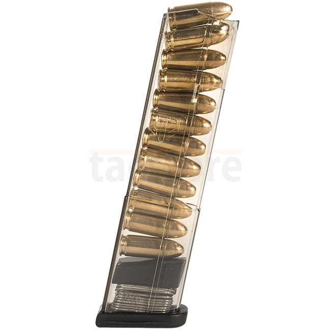 Das ETS Glock 43 9mm 12 Schuss Magazin - Transparent ist ein langlebiges und durchsichtiges Magazin, das bis zu 12 Schuss 9mm Munition für die Glock 43 Pistole aufnehmen kann. Dieses Magazin bietet eine zuverlässige Leistung und ermöglicht es Ihnen, einfa