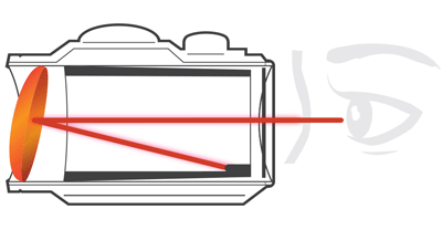 Red Dot Linsen Positionierung: Alle Red Dot Visiere haben eine Objektivlinse an der Vorderseite des Geräts, die eine sphärische Form aufweist. Im Gegensatz zu einem herkömmlichen Zielfernrohr ist jedoch die Objektivlinse in einem Rotpunktvisier schräg eingesetzt und scheint geneigt wenn man auf das Visier schaut. Dieser Winkel der Frontlinse ermöglicht, dass das von der batteriebetriebenen LED-Lichtquelle innerhalb des Geräts erzeugte Licht zurück in das Gerät reflektiert wird. Das reflektierte Licht wird zum "Punkt" oder zur Zielreferenz, die der Anwender sieht, wenn ein Rotpunktvisier eingeschaltet wird.