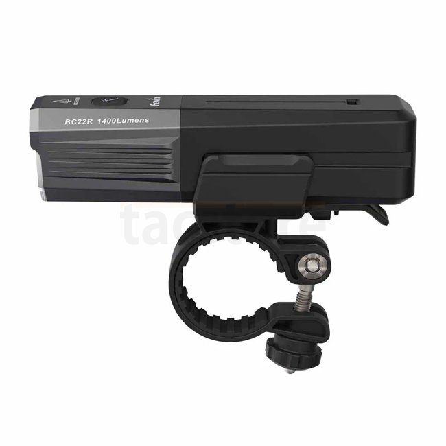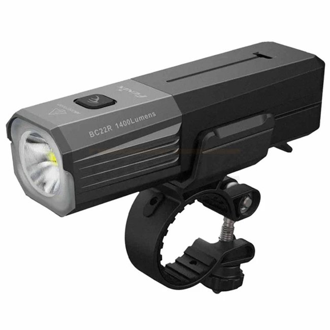 Die Fenix BC22R ist eine wiederaufladbare Fahrradlampe mit 1 400 Lumen Lichtleistung. Ihr Abblendlicht mit Cut-Off-Zone reduziert die Blendwirkung im Straßenverkehr, während die seitliche Lichtverteilung für bessere Sichtbarkeit sorgt. Die Montage ist beidseitig möglich, der Akku wechselbar.