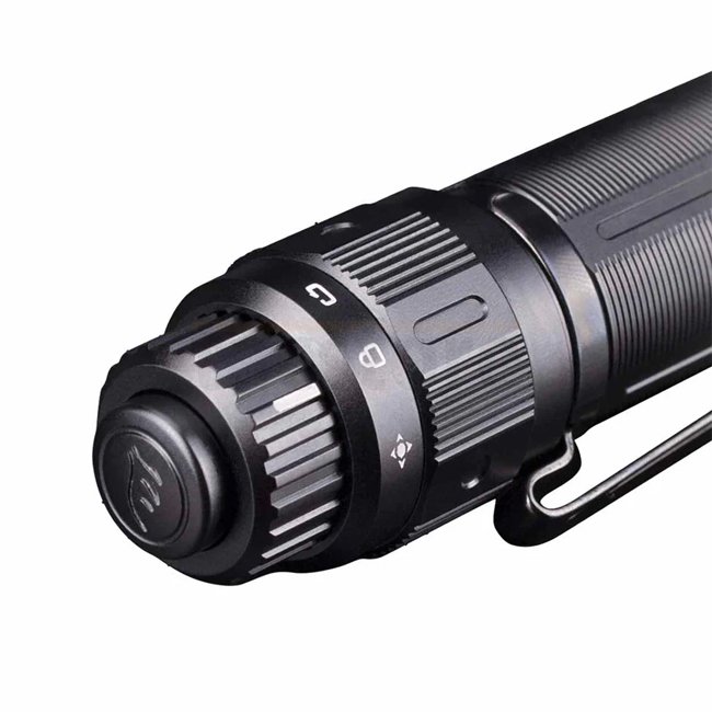Die Fenix PD36 TAC ist eine taktisch ausgelegte Variante der PD-Reihe. Sie verfügt über einen Drehschalter am Heck zur schnellen Umschaltung zwischen Tactical-Modus (nur hoher Leuchtstufe und Stroboskop) und Duty-Modus (vollständige Lichtstufen + Strobe). Betrieben wird sie mit einem 21700-Akku, die Reichweite beträgt rund 274 Meter.