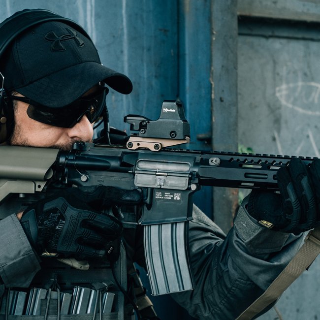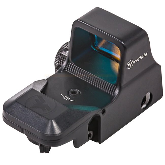 Firefield Impact XL Reflexvisier-Box: 1-fache Vergrößerung, 33x24mm Objektiv. Leichtgewichtig mit 160g, mit 5 MOA Punktvisier. IP55 bewertet, Gehäuse aus Aluminium.