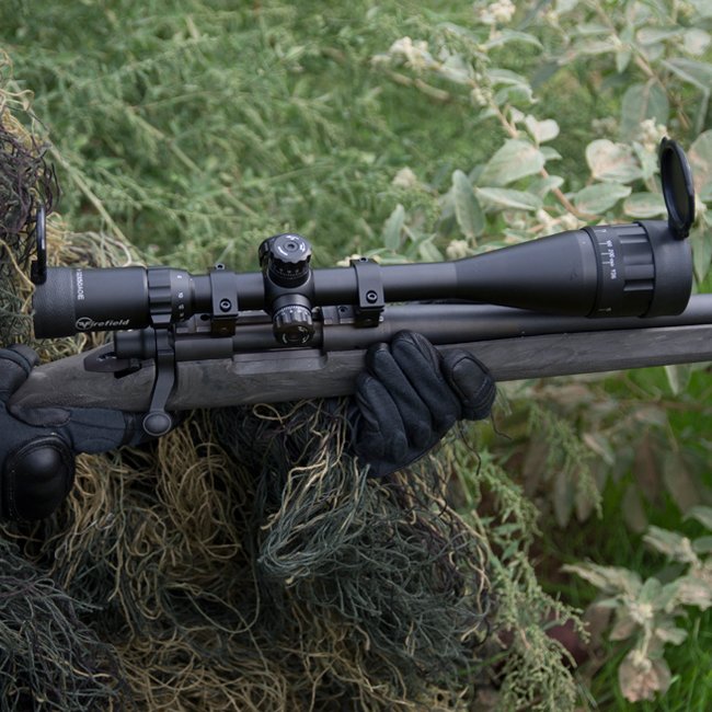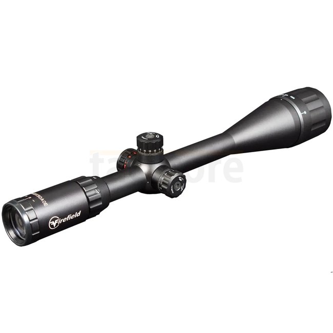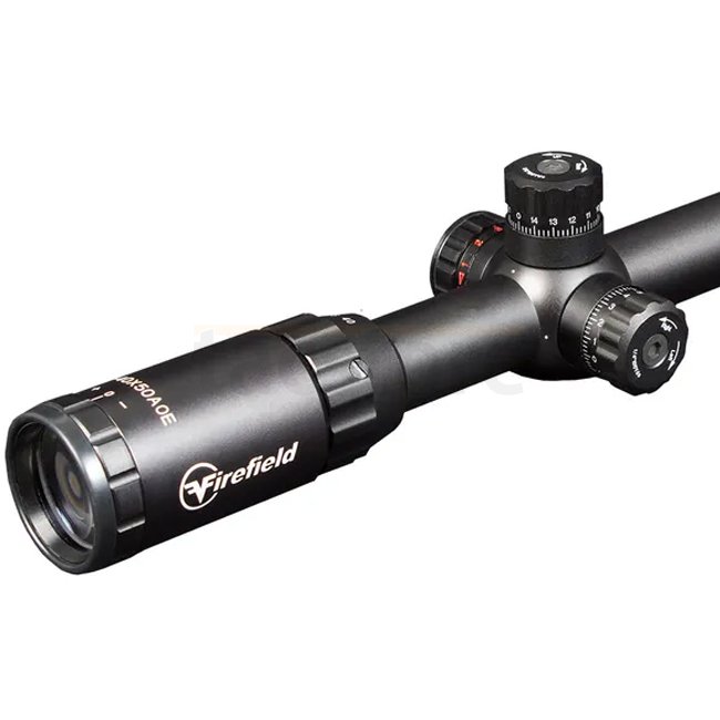Firefield taktisches Zielfernrohr mit 10-40x Vergrößerung, Mil Dot Absehen und 1 Zoll Rohrdurchmesser. Ideal für Langstreckenschießen mit IPX4-Standard und Aluminiumgehäuse. Weaver/Picatinny Montage. Länge 415mm, Gewicht 879g, mit 120 MOA maximalen Einste