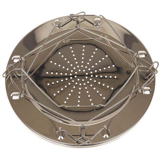 Faltbarer Camping-Toaster für alle Herdarten, 100 % Edelstahl mit 12 cm langen Zangen. Leichtgewicht mit 250 g. Packungsgröße 22x2 cm.