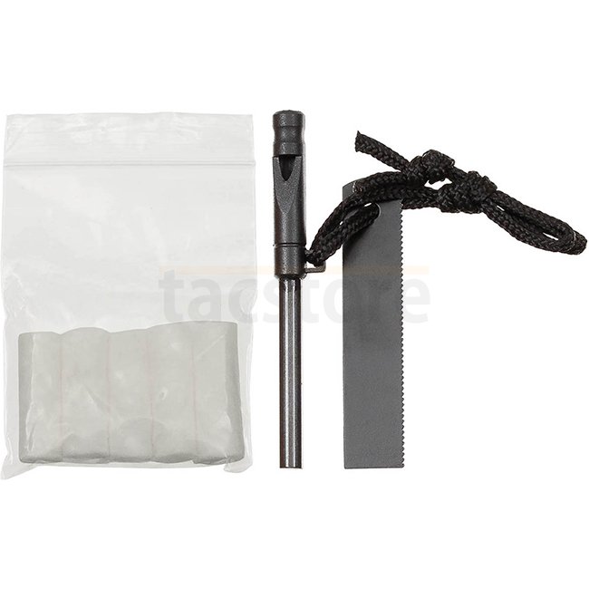 Schutz gegen Kälte, Nässe, Wind und Hitze. Notfall-Schlafsack-Set einschließlich 1 Schlafsack, 1 Feuerstarter mit Signalpfeife, Schaber, 5 Baumwollanzündern, Transporttasche mit Pfeife. Abmessungen: 210 x 90 cm, Packmaß: 8 x 10 cm, Gewicht: 160