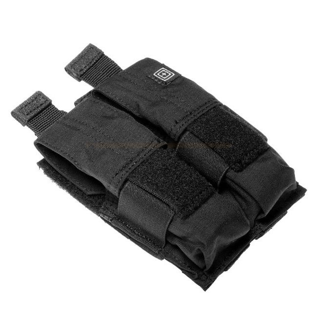 Pochette Double 40mm 5.11 - Noir : Construction durable en Nylon 1050, compatible MOLLE, contient deux grenades de 40mm.