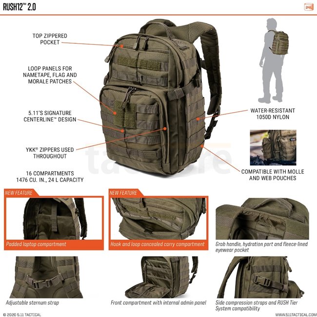 5.11 RUSH12 2.0 Sac à dos — 24L tactique