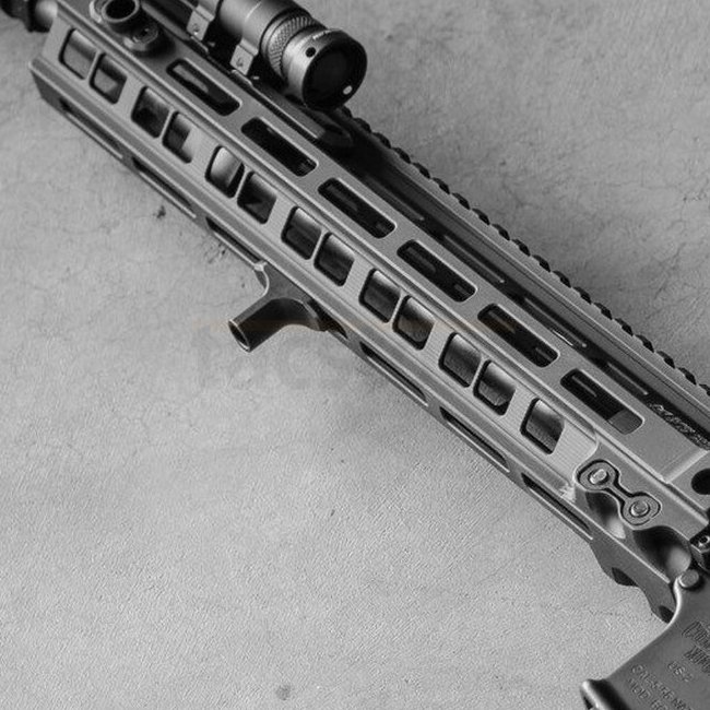 Additionally, the Finger Stop functions well as a forward limit to prevent your fingers from slipping off shorter handguards onto a hot barrel or suppressor, and as a barricade rest.