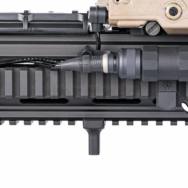 De plus, le Finger Stop fonctionne bien comme une limite vers l'avant pour empêcher les doigts de glisser des protège-mains plus courts sur un canon chaud ou un suppresseur, et comme un repose-barricade.