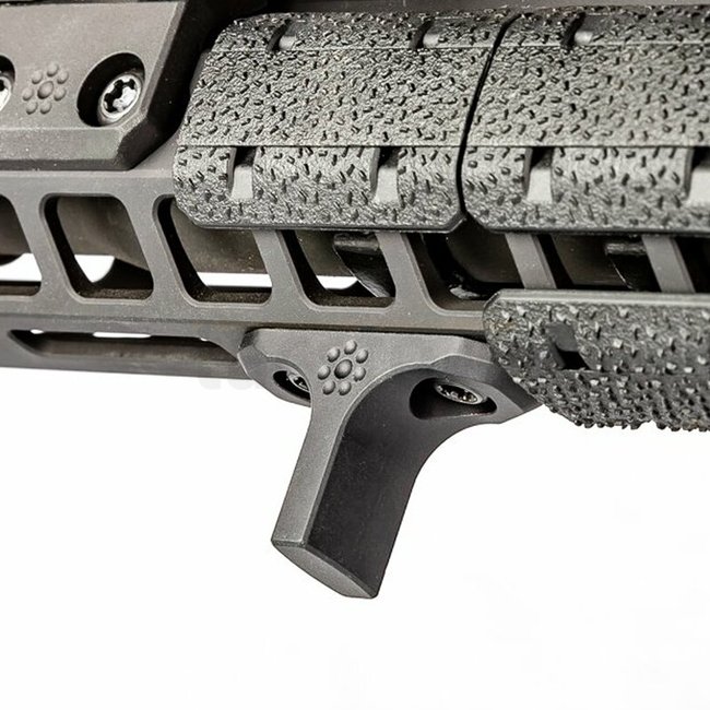 L'indexeur peut être utilisé de différentes manières, mais l'intention principale est de le placer entre deux doigts (généralement l'index et le majeur). Cela le place généralement plus en avant sur le garde-main, ce qui signifie également qu'il ne gêne pas lors de la transition vers des positions de tir à genoux ou couchées, où la plupart des gens déplacent leur main de soutien vers l'arrière. Utilisé de cette manière, l'indexeur permet de tirer beaucoup plus facilement le fusil dans votre épaule et de garder le contrôle pendant le tir.