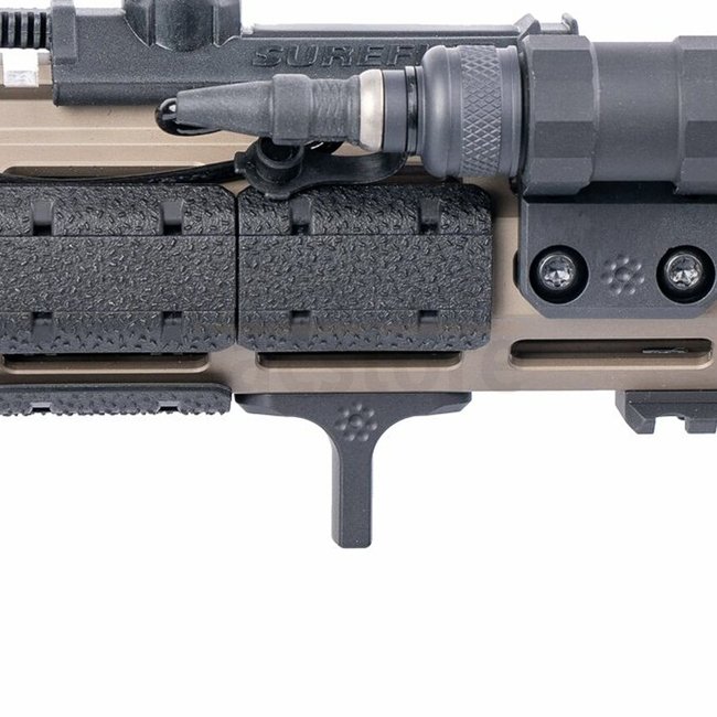 De plus, le profil plus large et plus plat de l'indexeur fonctionne très bien comme une butée de main ou une butée de barricade, et fonctionne également comme une limite avant pour empêcher vos doigts de glisser des protège-mains plus courts sur un canon chaud ou un suppresseur.