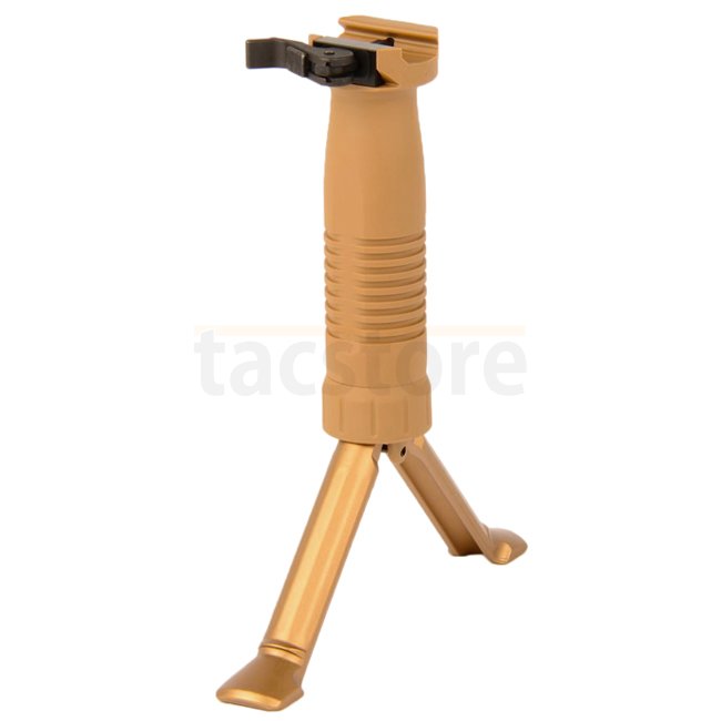 Cette poignée est très polyvalente. Principalement c'est un foregrip mais en raison du bipied intégré, qui peut être extrait rapidement, l'opérateur peut augmenter la précision considérablement pour des coups de longue distance.
