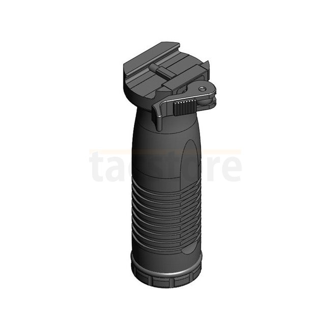 Ce B&T Vertical QD Polymer Foregrip en noir est un accessoire durable avec une hauteur maximale de 129mm, une longueur de 44.8mm, et un rail d'accessoires OTAN. Il est fabriqué en polymère, pèse 121g et a une température de déflexion thermique de 250°C.