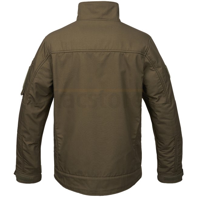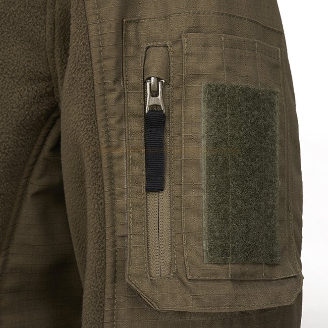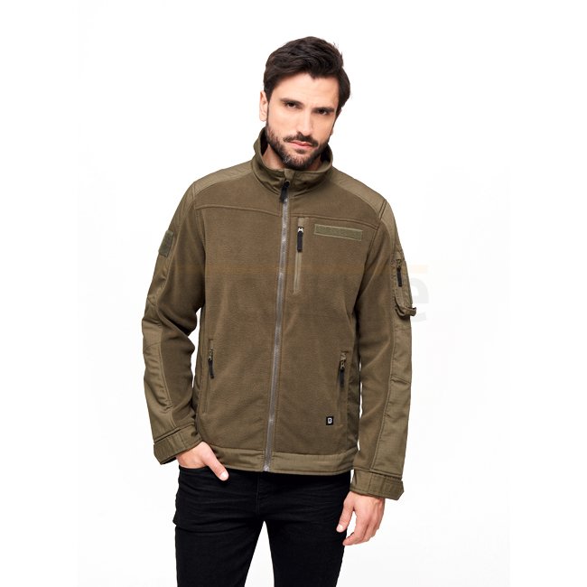 Veste en polaire Brandit Ripstop - Olive - L. Veste en polaire robuste, fonctionnelle et déperlant avec plusieurs poches, compartiments zippés et zones Velcro pour personnalisation. Ourlet ajustable, dos plus long et protection du menton. Tissu 1 : 100% p