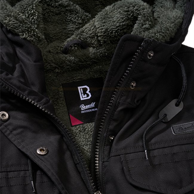 Restez élégante et au chaud avec le Parka Marsh Lake pour femmes de Brandit en Noir XS. Doté d'une doublure matelassée de haute qualité, d'une douce fourrure en teddy, de nombreuses poches, d'une taille à cordon de serrage et d'applications en cuir synthé