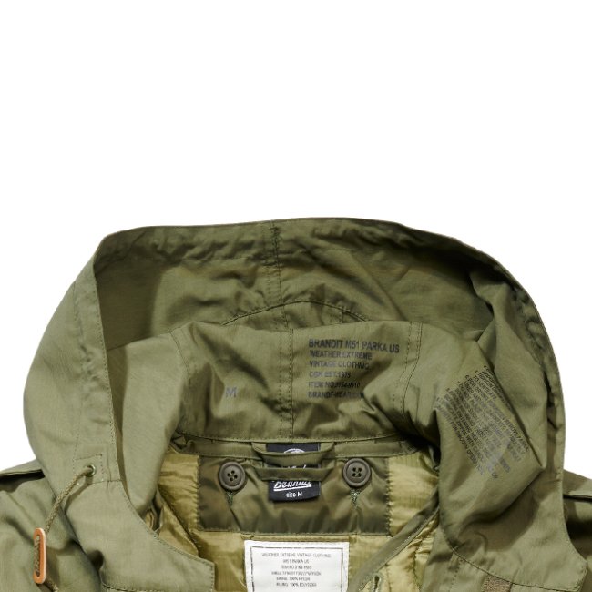 Restez au chaud et élégant avec le Parka M51 US de Brandit en Olive, taille L. Caractéristiques : design en queue de poisson, impression de style militaire, doublure thermique amovible et fermeture éclair de haute qualité.