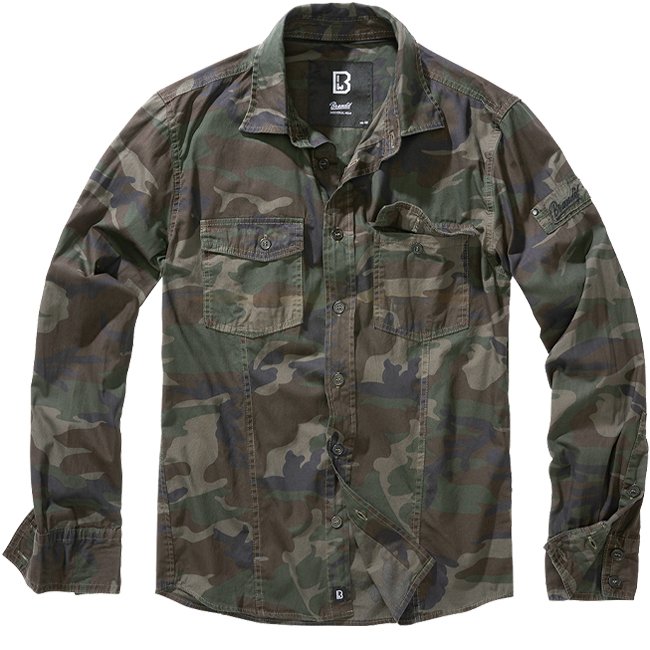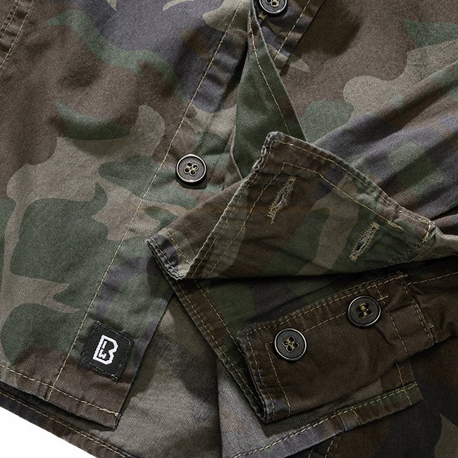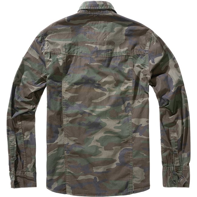 Chemise Brandit Slim - Camouflage - M - Chemise de style vintage ajustée avec un aspect usé, dotée d'une étiquette logo et fabriquée en 100% coton.
