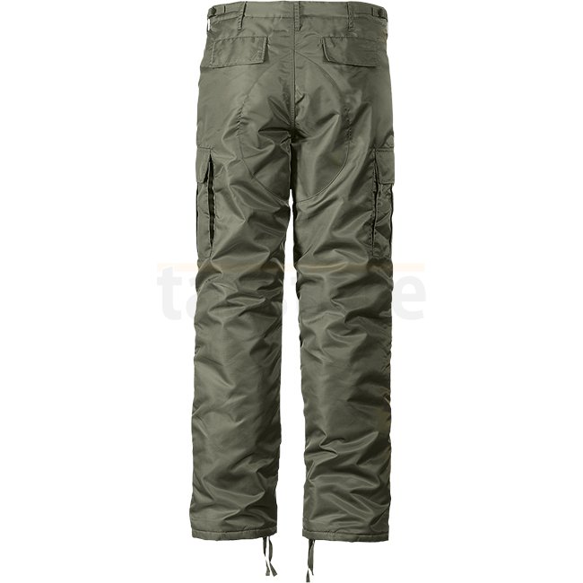Restez au chaud et élégant avec le pantalon thermique Brandit en Olive - L. Résistant à l'eau avec un design rembourré, ces pantalons sont fabriqués en nylon de haute qualité et doublés en polyester pour un confort ultime. Complétés par une doublure de po