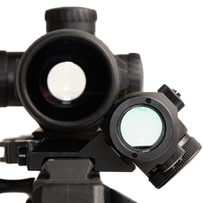 Afin d'engager une cible à courte distance, une optique secondaire sans grossissement est très utile à côté de la lunette principale, non seulement pour les tireurs d'élite mais aussi pour les tireurs de fusil dynamiques. Le support NAR à 45 degrés est la solution parfaite pour monter un Aimpoint T1 / T2. La monture est simplement vissée sur le rail NAR / Picatinny du fusil.