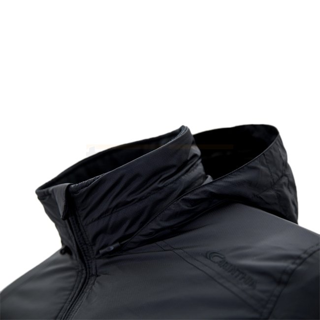 La veste Carinthia LIG 4.0 en noir est une veste déperlant avec un col ajustable, une capuche pliable et un col intérieur en polaire thermique. Elle dispose de grandes poches extérieures, d'un chauffe-poignets intérieur, d'un cordon de serrage ajustable à