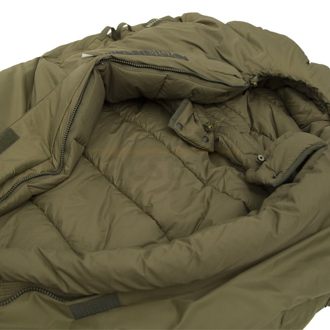 Ce sac de couchage d'hiver haute performance pour usage militaire possède des tubes de protection généreux, une bande anti-accrochage, un rabat de protection, et une coupe différentielle pour un maximum de volume. De plus, il peut être ouvert en bas pour