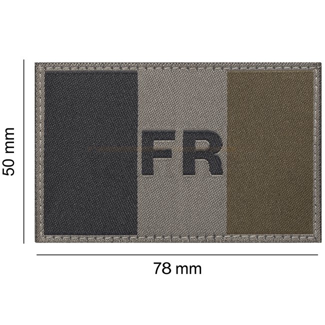 Écusson élégant avec le drapeau de la France en RAL 7013, dimensions 76 x 50 mm et poids de 3g.