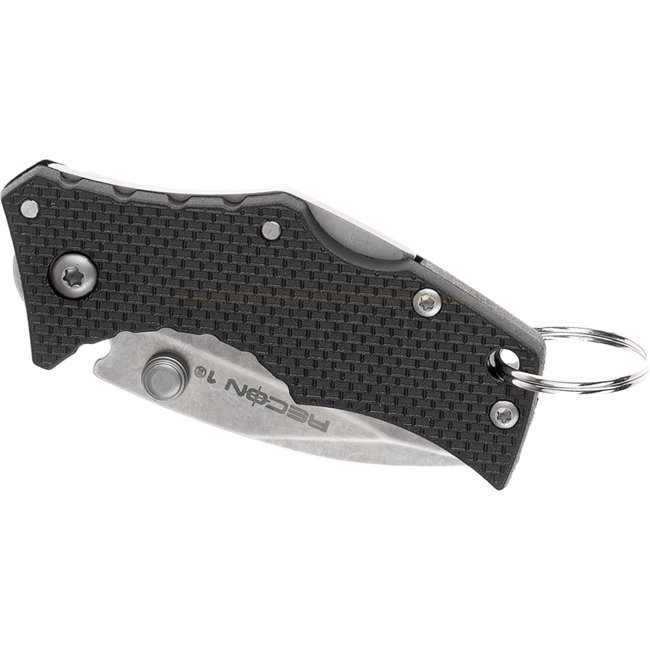 Le Cold Steel Recon 1 Micro Spear Point Folder est un couteau pliant compact et polyvalent fabriqué en 4034SS avec une finition sablée. Le matériau du manche est Griv-Ex™. L'épaisseur de la lame est de 2,5 mm, la longueur de la lame est de 50,8 mm, la lon
