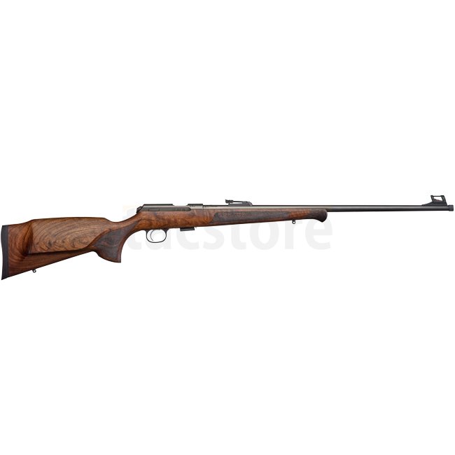 La CZ 457 Premium .22 LR Version Gaucher est une carabine de chasse au style classique, spécialement conçue pour les tireurs gauchers. Elle associe une esthétique traditionnelle à une ingénierie de précision moderne et dispose d’une crosse en noyer haut de gamme avec appuie-joue et embout décoratif. Son canon à profil léger de 630 mm est fileté en 1/2x20 pour permettre l’ajout d’un modérateur de son. La visée est intuitive grâce à une hausse à planchette et un guidon en fibre optique.