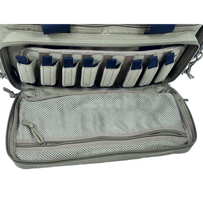 - Poche avant: Grande poche avant verrouillable avec support amovible pour 8 chargeurs et rangement en filet zippé