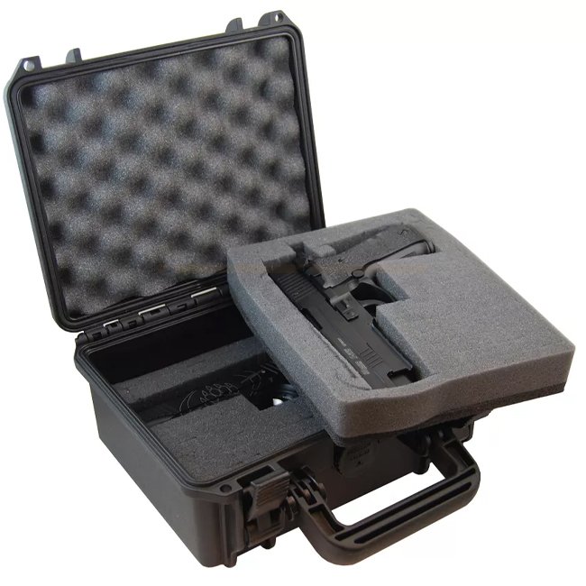 Hard Case Small-235 est une mallette résistante et légère – certifiée IP67 (étanche, antipoussière, antichocs) – idéale pour transporter en toute sécurité objets de valeur, équipement ou jusqu’à deux pistolets. Sa taille compacte s’adapte parfaitement à la poche inférieure du sac CED/DAA RangePack (Medium).