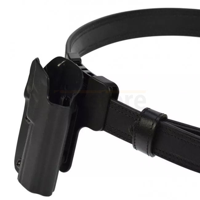 • Rail en aluminium entre la rotule et le corps du holster pour une meilleure rigidité et ajustement en hauteur