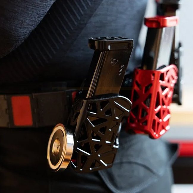 L’X‑Ray Aluminum Pouch reprend le design découpé (cut‑out) de la version polymère, désormais disponible dans un corps en aluminium anodisé dur ultra-léger. Elle offre une maniabilité optimale pour la compétition, avec une durabilité renforcée.