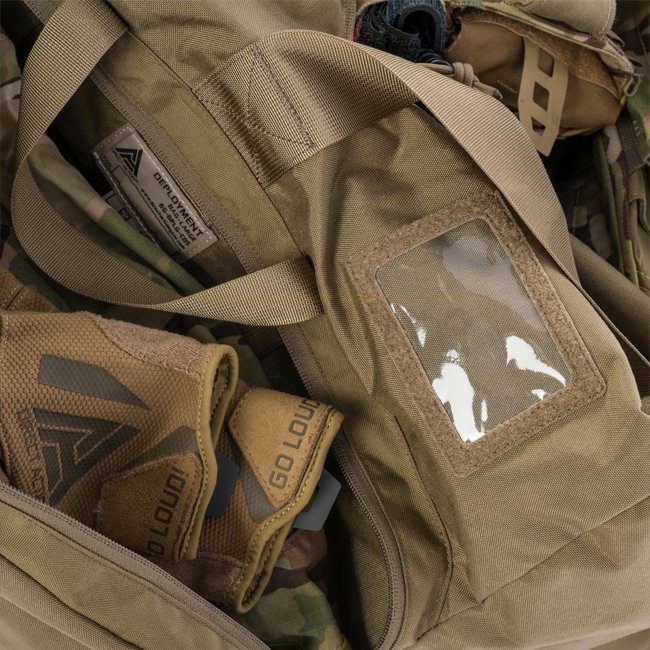 Le Direct Action Deployment Bag Large est un sac tactique léger et est fabriqué en tissu Cordura 500D durable. Doté d'une large bandoulière réglable, de deux poignées latérales et de deux poignées en ruban cousues sur tout son fond, le sac est adapté aux charges lourdes. Il possède une fermeture éclair YKK® facile d'accès au milieu, deux compartiments extérieurs plats et deux poches latérales séparées. A l'intérieur du compartiment principal, deux poches zippées en filet ont été cousues. Le Deployment Bag Medium a été équipé de deux panneaux latéraux doublés d'une boucle Velcro et de deux étiquettes transparentes pour une personnalisation facile.