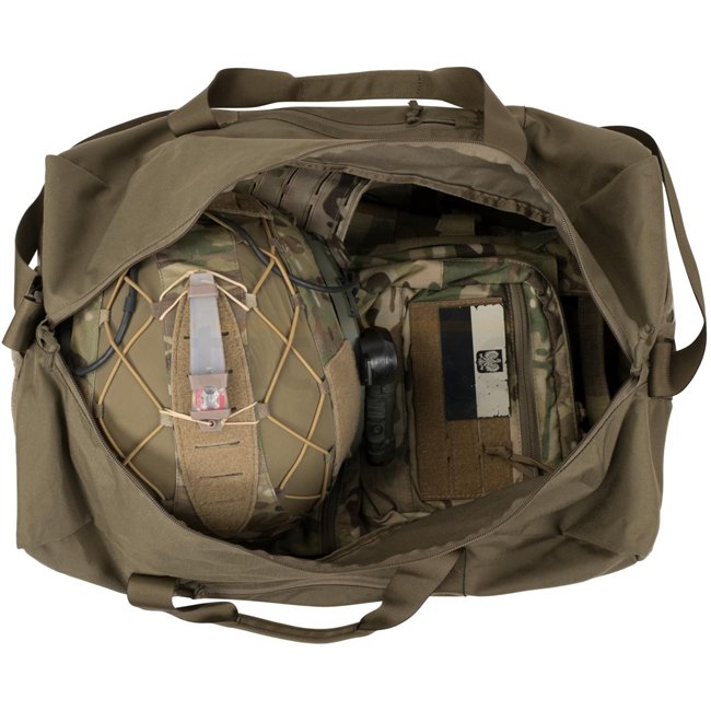 Sac de déploiement Direct Action Petit - Vert Adaptatif - fabriqué en tissu Cordura 500D durable, doté d'une bandoulière réglable, d'une fermeture éclair YKK, de compartiments extérieurs, de poches en maille zippées, de panneaux à boucles Velcro, et d'une