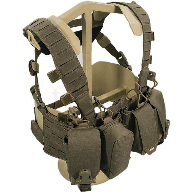Ce harnais de poitrine hybride de taille complète intègre des pochettes pour chargeurs afin de réduire le poids et d'ajouter de la modularité. Fabriqué en Cordura® 500D, il est adapté pour des chargeurs de type AR, AK, ou SR avec des pochettes ajustables.