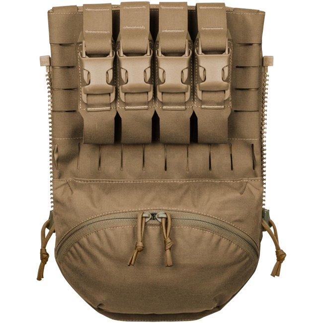 Panneau d'intervention Direct Action Spitfire Breacher - Marron Coyote : Panneau arrière entièrement personnalisable pour porte-plaques et sacs à dos. Comprend 4 poches pour grenades flash, une poche cargo doublée de velours, et un design polyvalent pour