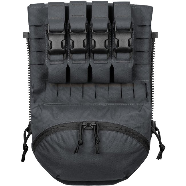 Panneau de Franchissement Direct Action Spitfire - Gris Ombre : Panneau arrière tactique pour le porte-plaque SPITFIRE, avec plusieurs poches pour des grenades flash et fumigènes, une grande poche de chargement doublée de velours, et un design polyvalent