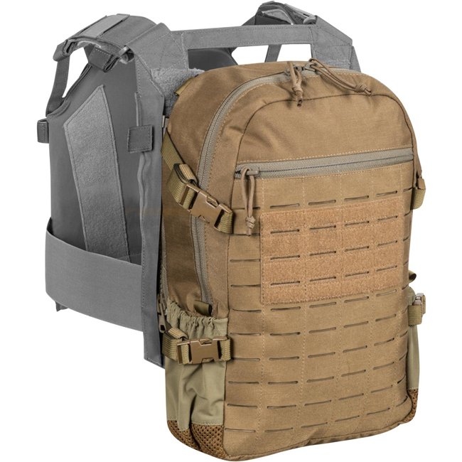 Le SPITFIRE MK II est facilement configuré pour un déploiement court et une patrouille plus longue. Pour rendre cela possible, vous pouvez attacher diverses ceintures de smoking, rabats et panneaux arrière. Le SPITFIRE MK II BACKPACK PANEL est l’une de ces options. Ce petit sac à dos se fixe directement au porte-assiettes via le système de fermeture éclair au dos ou peut être utilisé individuellement avec des bretelles amovibles. Le sac à dos dispose d'un grand compartiment principal dans lequel rentrent tous les ustensiles importants et une poche à eau. Une poche avant plate supplémentaire offre de la place pour divers petits objets. Le sac à dos est parfait pour les patrouilles plus longues, surtout si vous ne souhaitez pas transporter de bretelles supplémentaires sur votre porte-bagages.