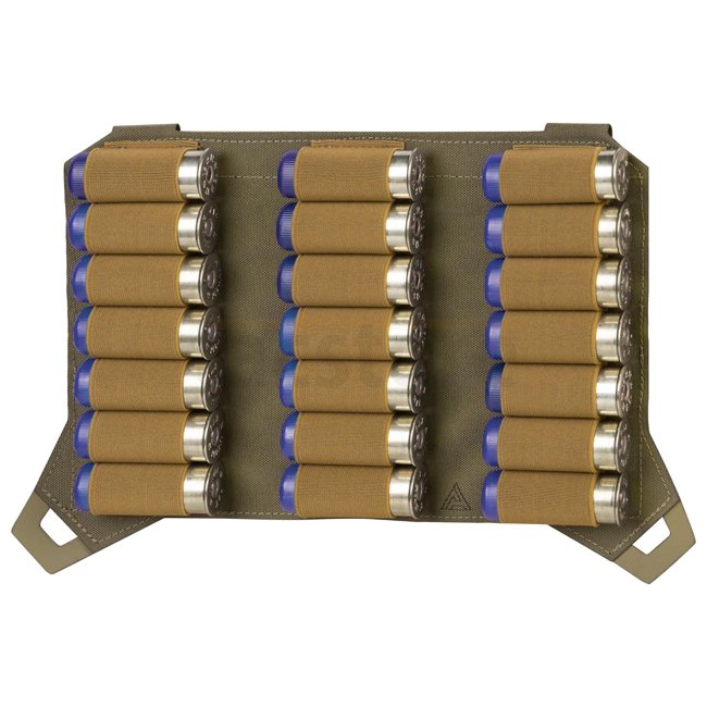 Rabat pour cartouches de fusil Spitfire Direct Action en PenCott GreenZone permettant de transporter jusqu'à 21 cartouches de fusil à pompe standard 12GA avec précision et commodité. Fabriqué en Nylon 100%, ce rabat est compatible avec le système de monta