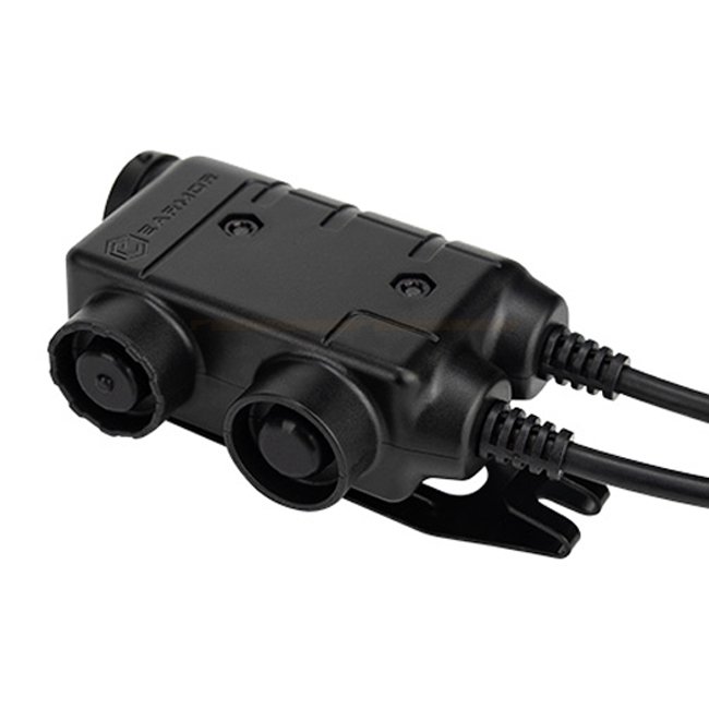 M56 Tactical PTT d’Earmor est un adaptateur PTT double canal compatible avec casques Earmor et systèmes MilSpec Nexus TP‑120/U‑174. Il intègre deux ports COM et des boutons PTT indépendants et peut être personnalisé avec différents câbles de connexion.