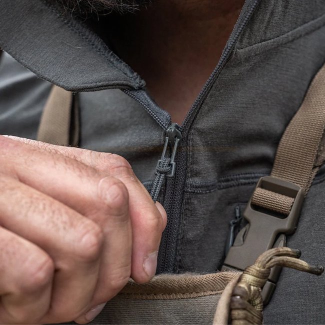 Le zip quart de longueur facilite l’aération et l’habillage. La capuche ergonomique protège du vent et du froid.