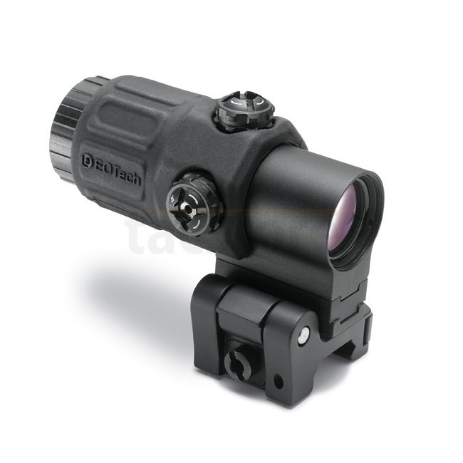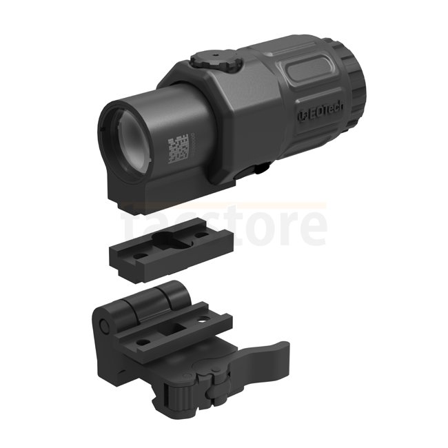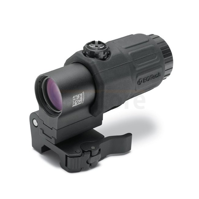 Le magnificateur EoTech G33.STS en noir est un magnificateur 3X compact et léger avec un montage amélioré pour une transition rapide entre les grossissements. Il propose un réglage d'azimut sans outil, un large champ de vision, et un dioptrique réglable p